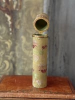 Étui en soie XVIII ème ouvrant sur le haut par cerclage métal doré intérieur vert