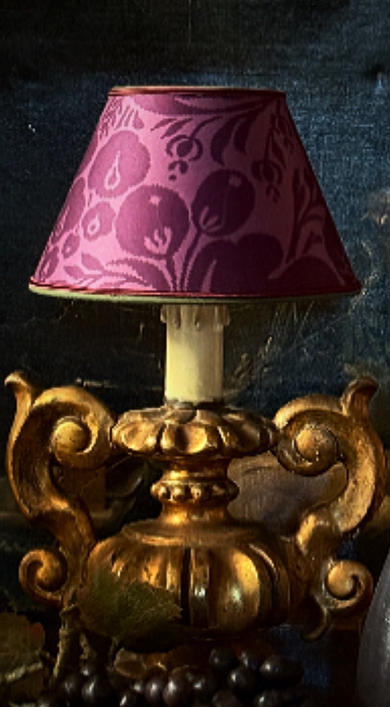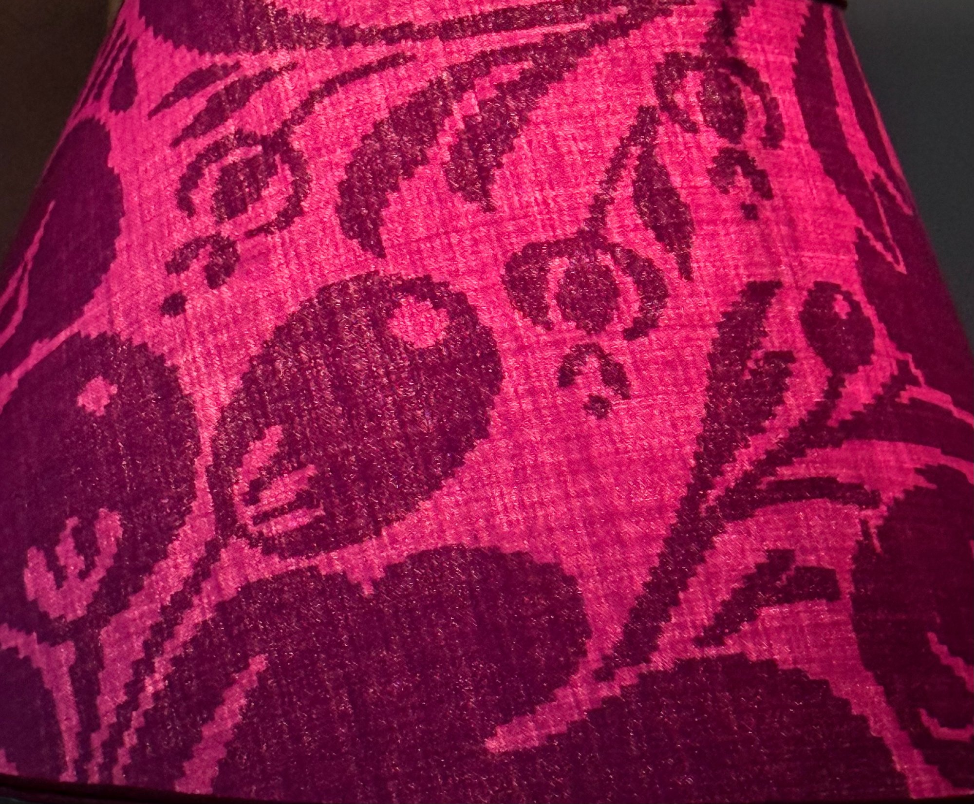Abat jour conique monté avec un tissu de Manuel Canovas au couleurs lumineuses