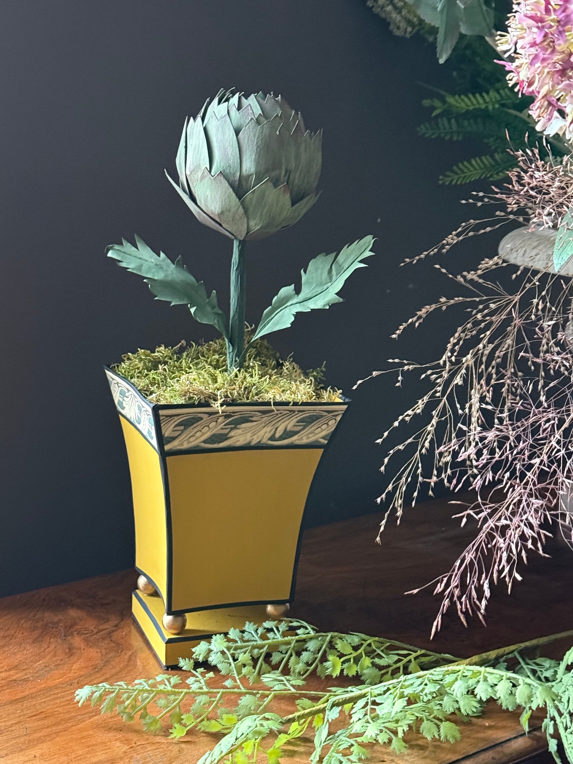 Artichaut dans son cache pot dans le goût des cache pot en tôle
