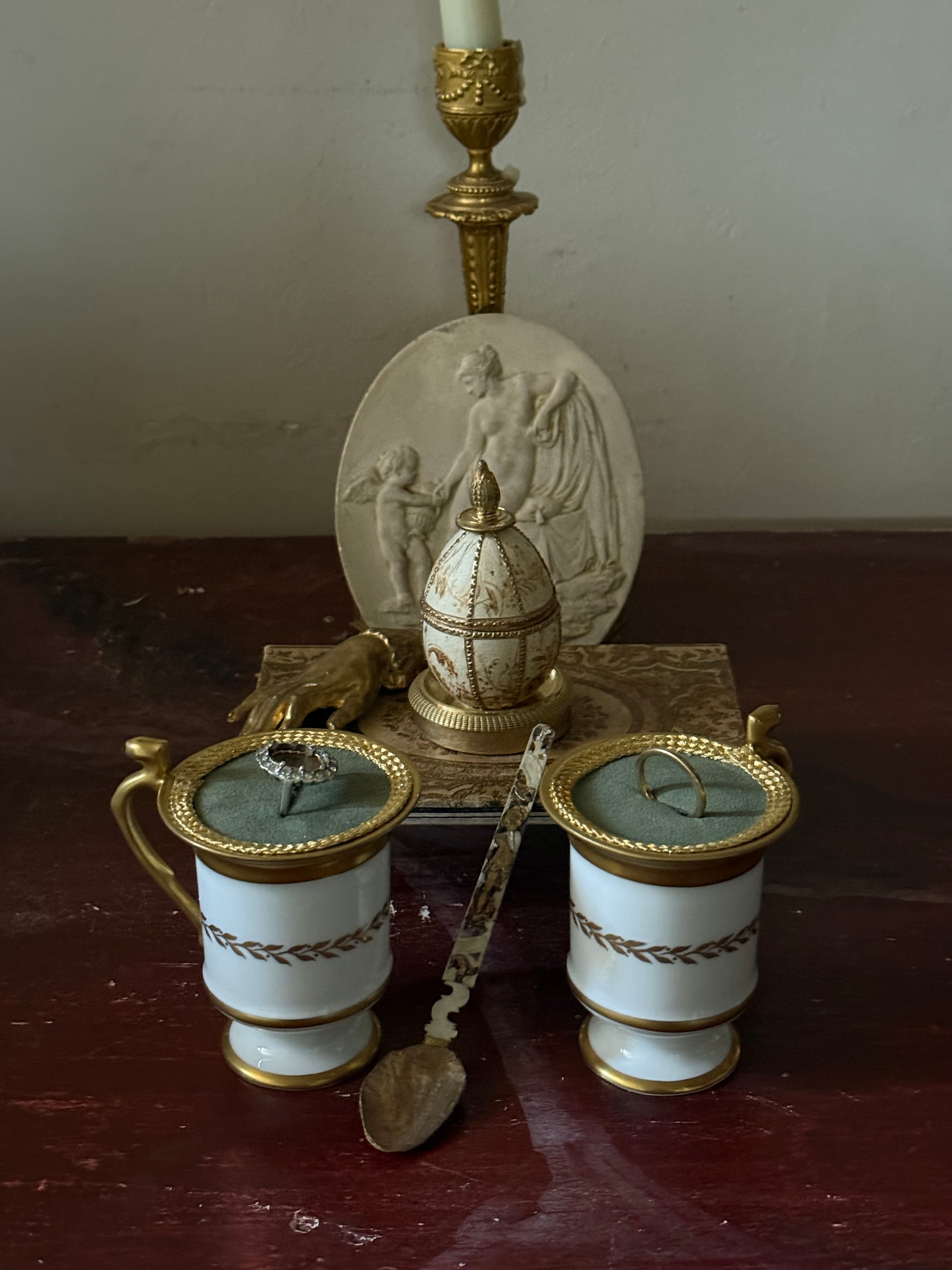 Tasse porcelaine blanche et or écrin à bague